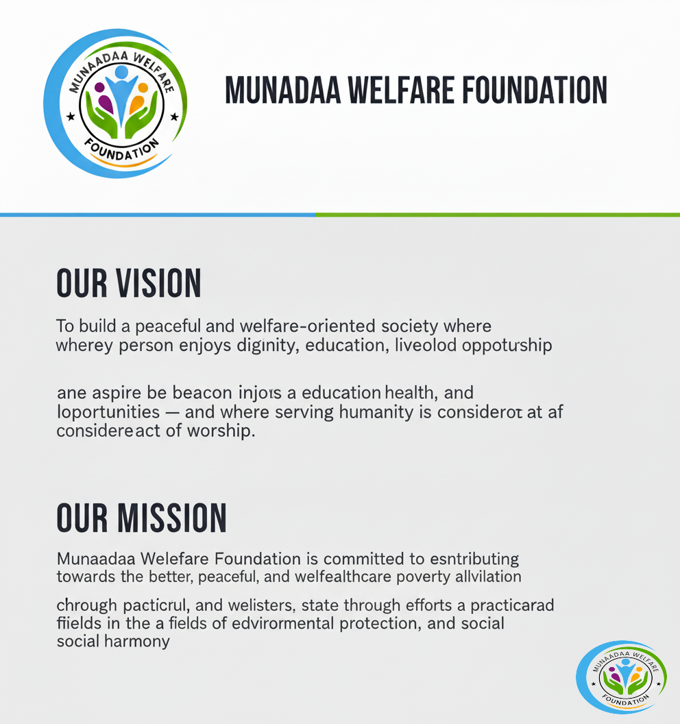 Munaadaa Welfare Foundation is dedicated to delivering targeted programs across **Health, Wealth, and Welfare**. We strive to empower vulnerable populations by providing comprehensive healthcare access, driving economic self-sufficiency, and ensuring holistic community support to break cycles of poverty and build resilient futures.